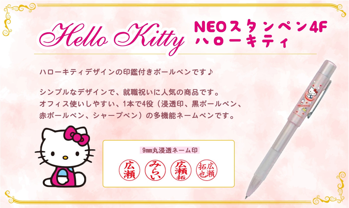 NEOスタンペン4F ハローキティ(9mm丸浸透ネーム印)